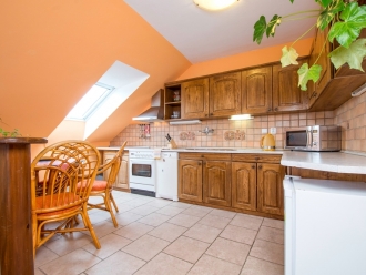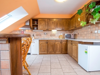 vybavení: 2x televize, lednice, rychlovarná konvice, mikrovlnná trouba, elektrický sporák, dřez, myčka nádobí (tablety do myčky nejsou součástí vybavení apartmánu), wifi připojení