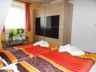 4 lůžka - 2 x manželské lůžko, klimatizace, apartmán se nachází 2NP, s okny do ulice,